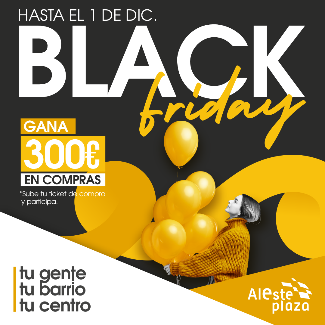 Este Black Friday no solo podrás aprovechar los mejores descuentos y ofertas en tus tiendas favoritas de Aleste Plaza, sino que también tendrás la posibilidad de ganar 300€ para disfrutar en tus próximas compras.